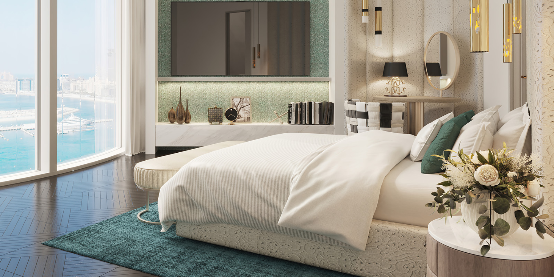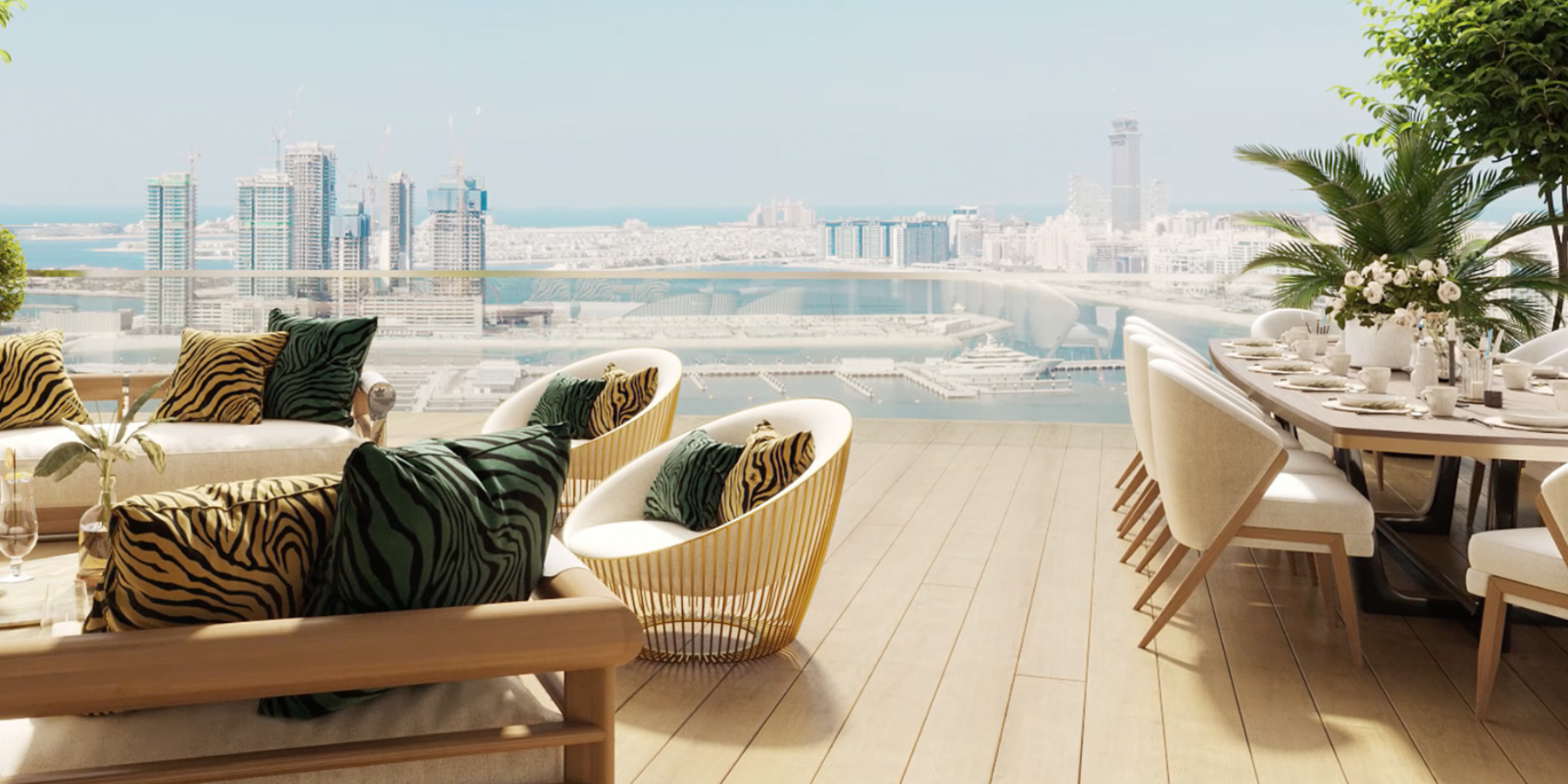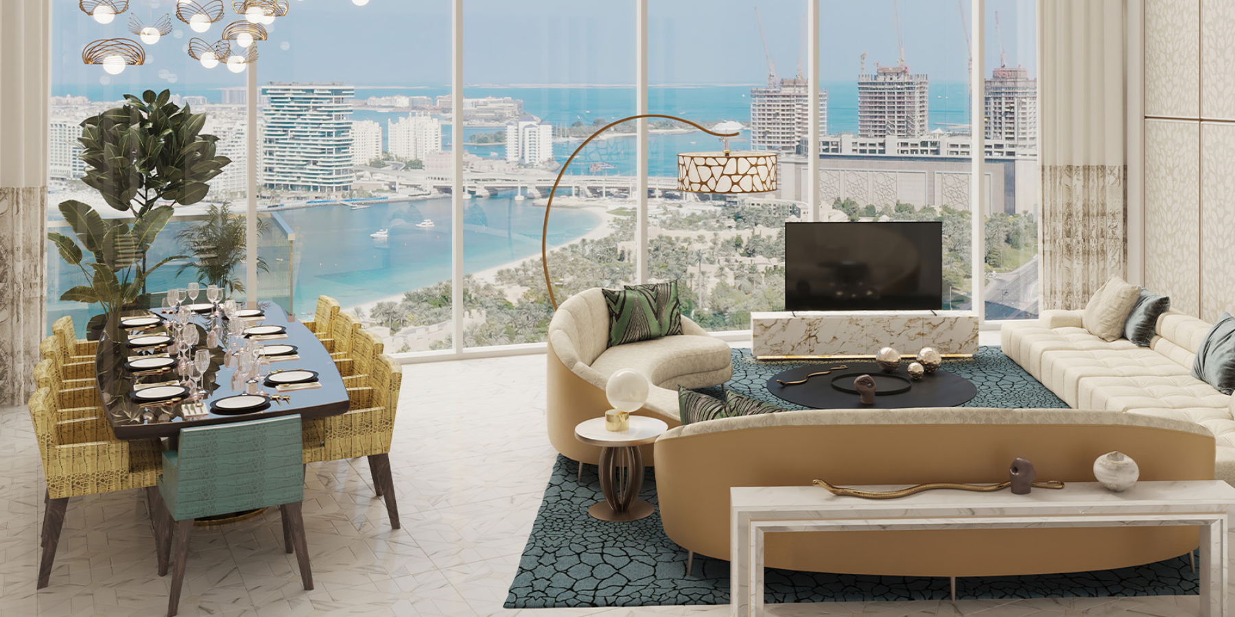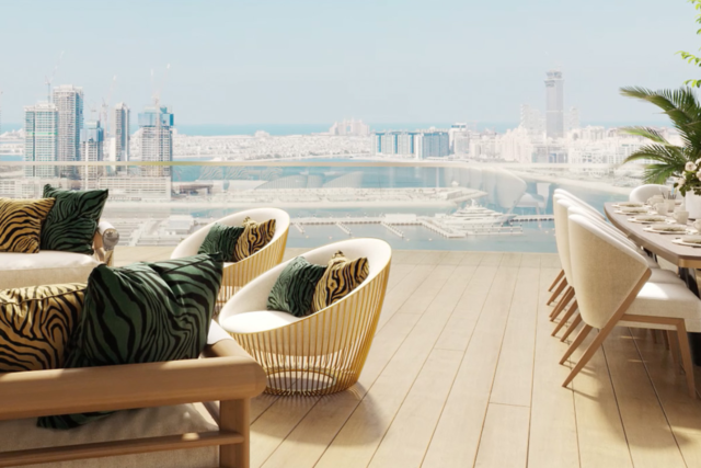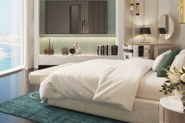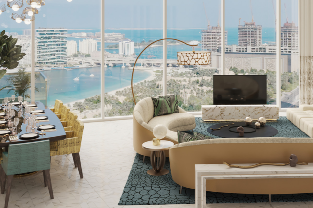 Cavalli Tower is an iconic 70-storey ultra-luxury residential skyscraper featuring breathtaking sea and skyline views, including the Palm Jumeirah, Burj Al Arab, and Dubai Marina. Interiors are curated by the Roberto Cavalli Group, merging high-fashion design with premium architecture by award-winning architect Shaun Killa (designer of Museum of the Future). The building includes luxury apartments, penthouses, and exclusive “flying villas” with private terraces and premium amenities.